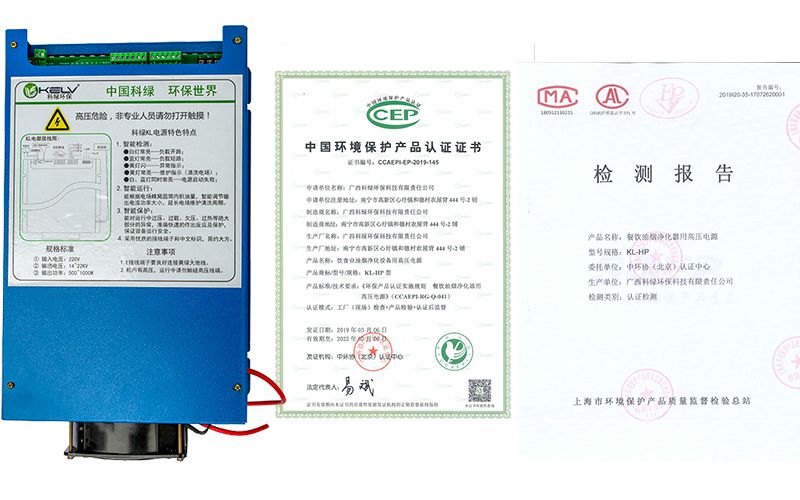 科绿环静电高压智能电源通过了上海市环境保护产品质量监督检验总站检测认证及获得电源专项的环境保护产品认证证书