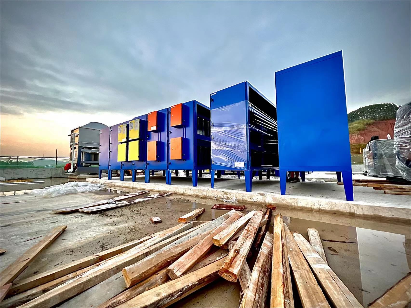 南宁市某大型屠宰场即将投入使用,最后的工程项目都在井然有序、如火如荼的进行着,科绿环保成为该屠宰场的指定品牌,提供其在废气处理工程项目中所用的废气处理设备,目前所需设备已抵达施工现场。